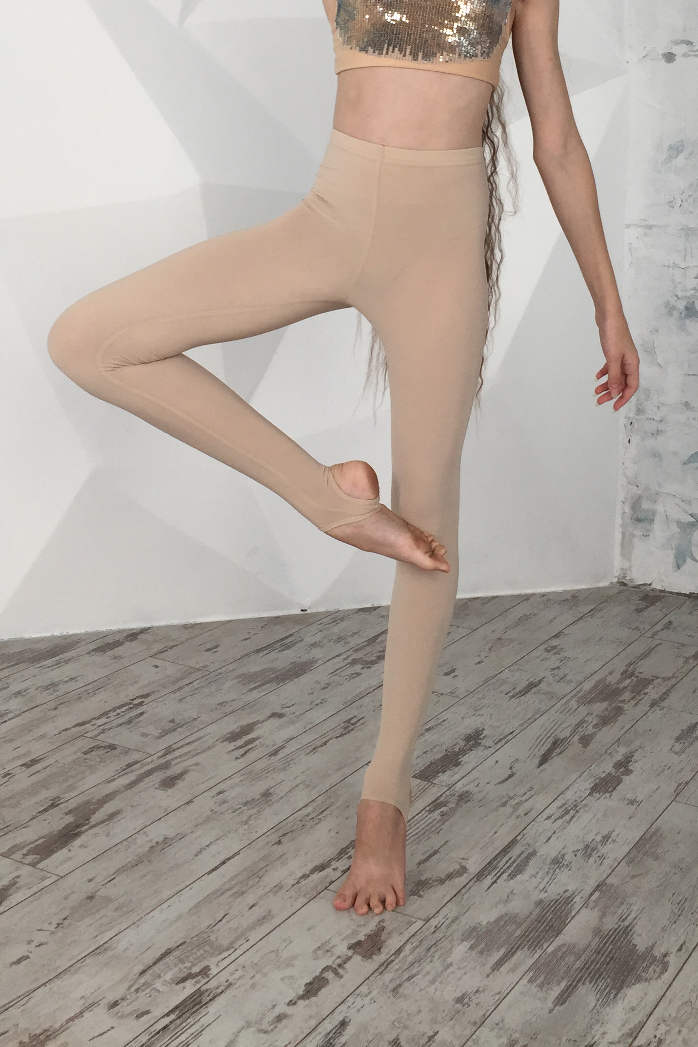 Для художньої гімнастики легінси тілесного кольору з розрізом під п'ятку підходять в якості одягу для тренувань. Їх легко поєднувати з купальниками будь-яких відтінків. Такі тілесні легінси можуть стати елементом костюму для контемпорарі, особливо, якщо є необхідність створення ефекту оголеної шкіри. В них також можна займатися фітнесом чи йогою. Красиво виглядають з туфлями на підборах, тож легінси тілесного кольору — чудовий вибір і для соціальних танців.