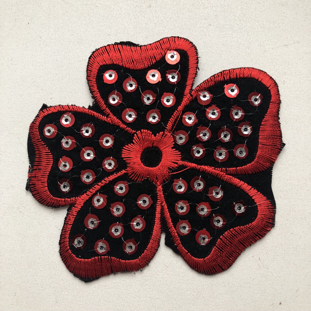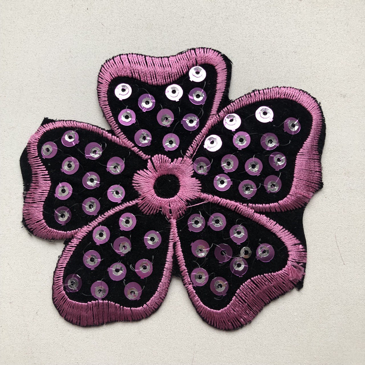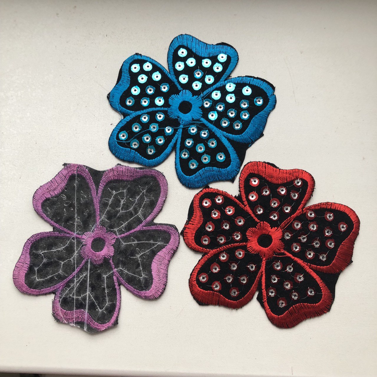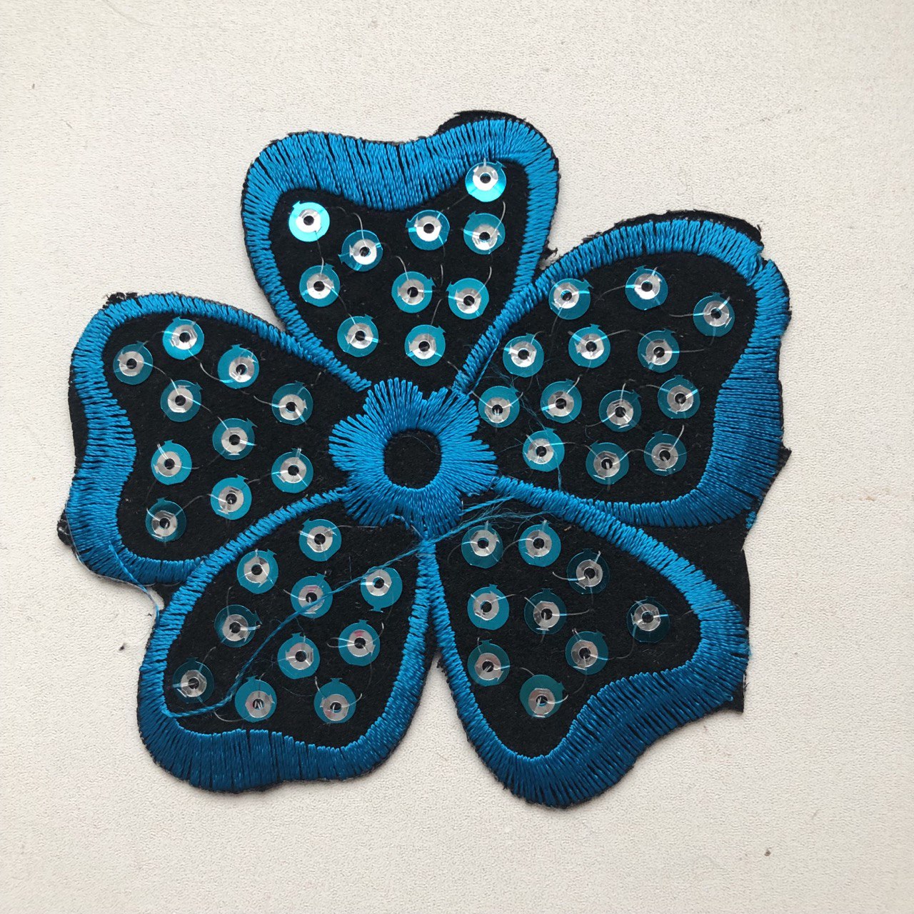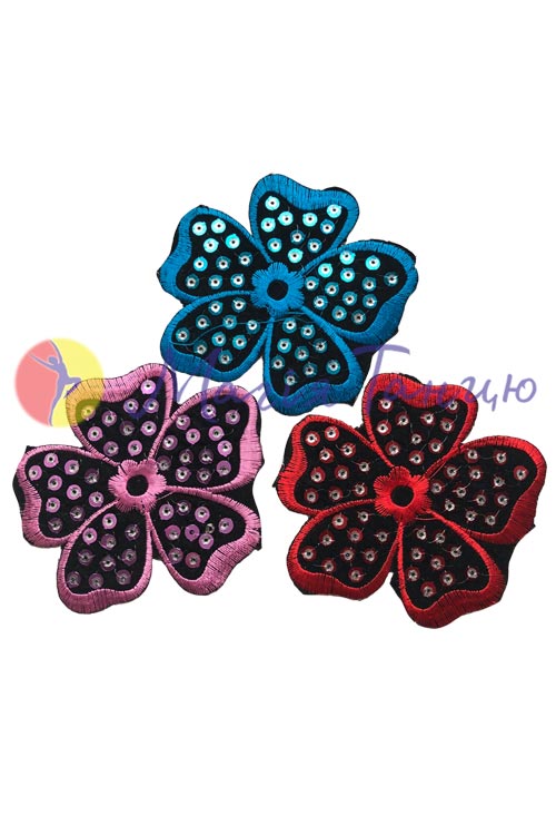 Квітка з пайєтками (різні кольори). Дуже гарна квітка на клейовий основі. Розмір квітки - 7-8 см в діаметр. Червоний, бірюзовий, малиновий.